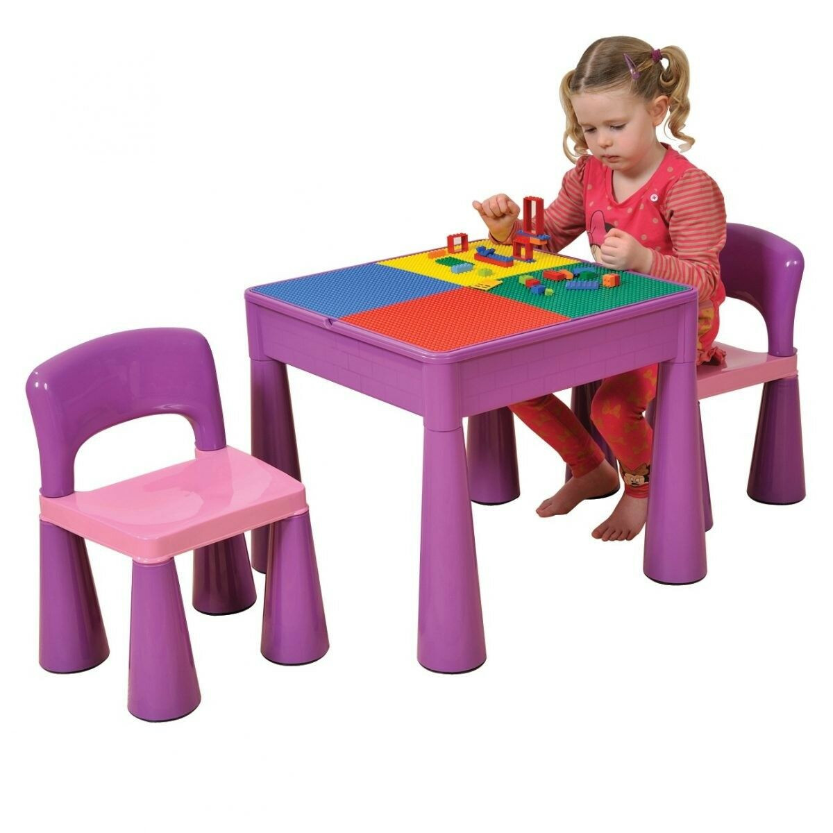 Kinder Lila Mehrzwecktisch und 2 Stühle - Lego, Wasser, Sand & Zeichnung Dieser attraktiv gestaltete Mehrzwecktisch und Stühle ist ein Muss für jeden Kinderspielbereich. Die Tischplatte ist zweiflächig - auf einer Seite glatt zum Zeichnen, Schreiben und Malen, während die Rückseite zu allen führenden Marken von Bausteinen passt (zB Lego). Der Tisch hat auch Platz für die Aufbewahrung von Spielzeug und Blöcken, ist aber auch für Sand- und Wasserspiele geeignet. Lieferung flach verpackt für einfache Montage. P>
