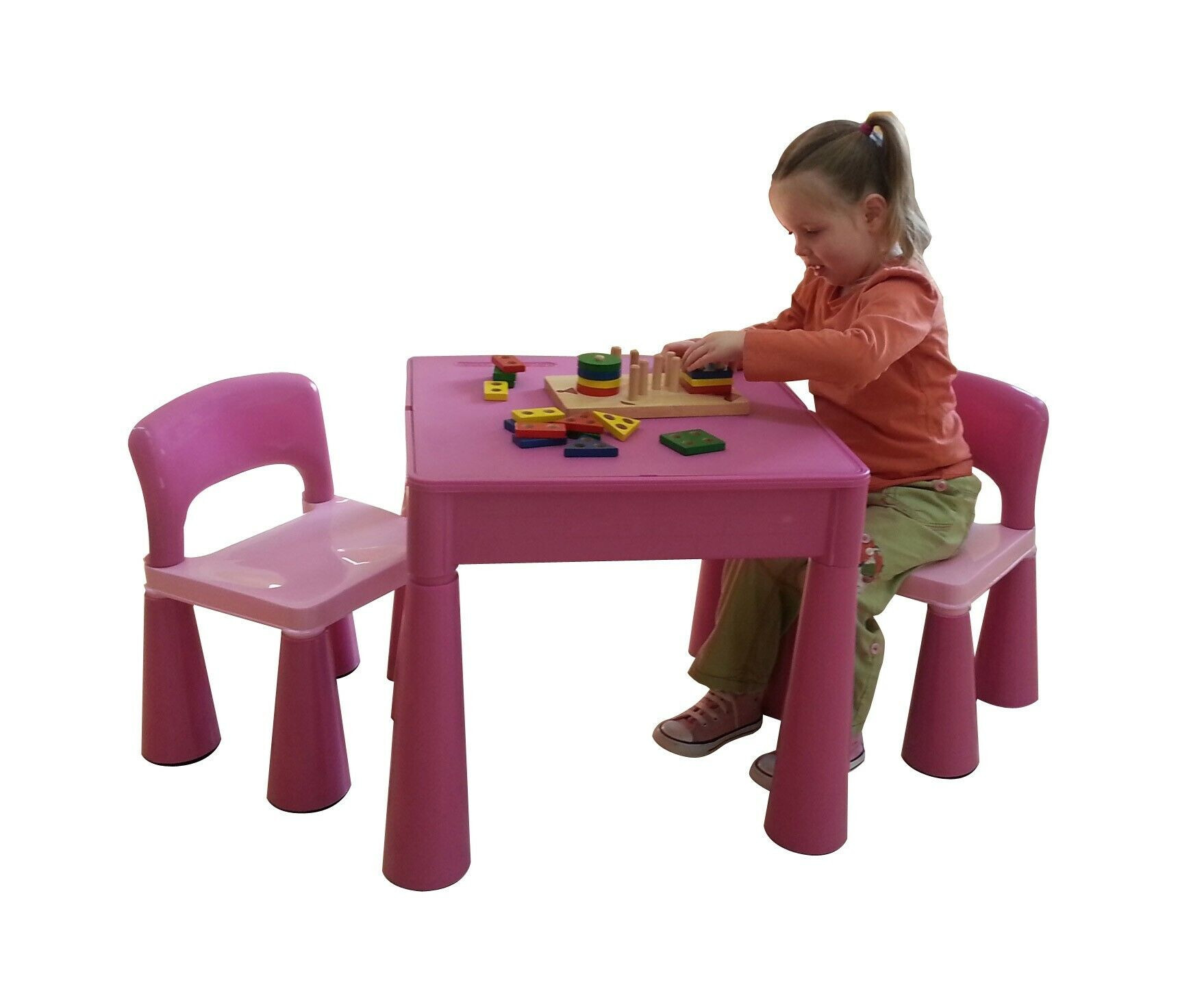 Mehrzweck-Tisch- und Stuhl-Set Dieser attraktiv gestaltete Mehrzwecktisch mit Stühlen ist ein Muss für jeden Kinderspielbereich. Die Tischplatte ist zweiflächig - auf einer Seite glatt zum Zeichnen, Schreiben und Malen, während die Rückseite eine Konstruktion hat, die zu allen führenden Marken von Bausteinen passt (zB Lego). Der Tisch hat auch Platz für die Aufbewahrung von Spielzeug und Blöcken, ist aber auch für Sand- und Wasserspiele geeignet. Lieferung flach verpackt für einfache Montage. P>