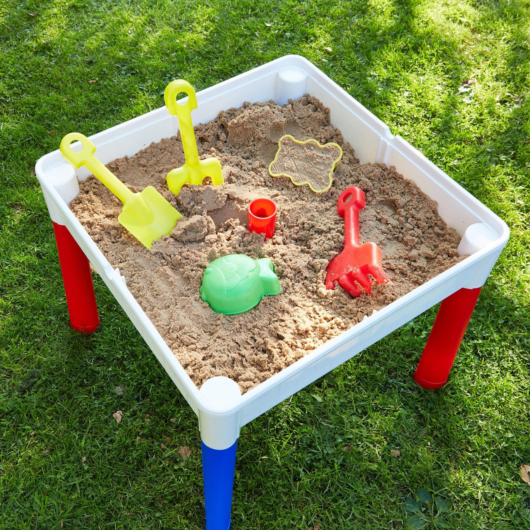 Ein Mehrzwecktisch, der sowohl Aufbewahrung als auch Aktivität kombiniert und ideal für jüngere Kinder ist. Es gibt eine doppelte Oberflächenabdeckung - eine Seite bietet eine glatte Oberfläche, die zum Zeichnen, Malen und Schreiben geeignet ist, während die andere Seite für alle führenden Marken von Bausteinen (zB Lego) geeignet ist. Der Lagerbereich kann für Spielzeug, Spiele usw. genutzt werden, eignet sich aber auch für Sand- oder Wasseraktivitäten. P>