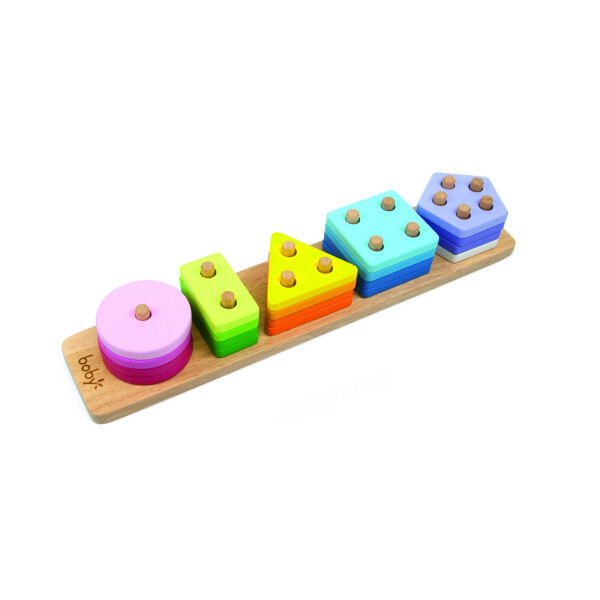 20-teiliger Sortierer mit 5 geometrischen Formen.