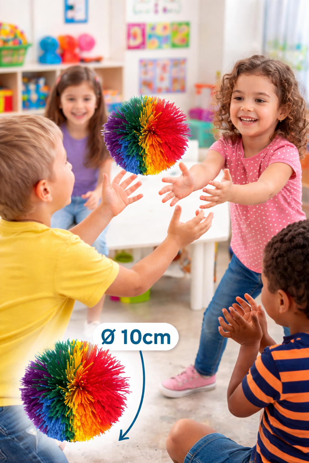Farbenfroh, weich und leicht für Kinderfreundlichkeit, dieser Gummiball rollt oder prallt mit seinem Gummifilament-Design nicht von Gegenständen im Innenbereich ab.