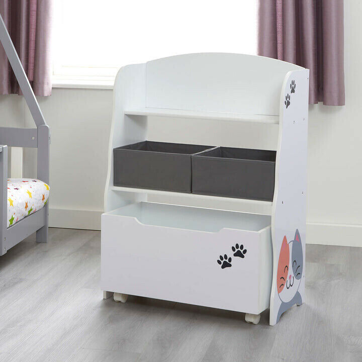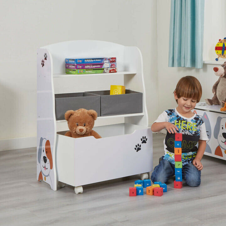 Wir stellen Ihnen unsere Aufbewahrungseinheit für Katzen und Hunde mit Spielzeugkiste vor, eine ideale Aufbewahrungslösung für Ihre Kinder, um ihre Bücher und Spielzeuge aufzubewahren. Sie können nie genug Stauraum im Schlafzimmer Ihres Kindes haben, und diese Aufbewahrungseinheit hat alles.