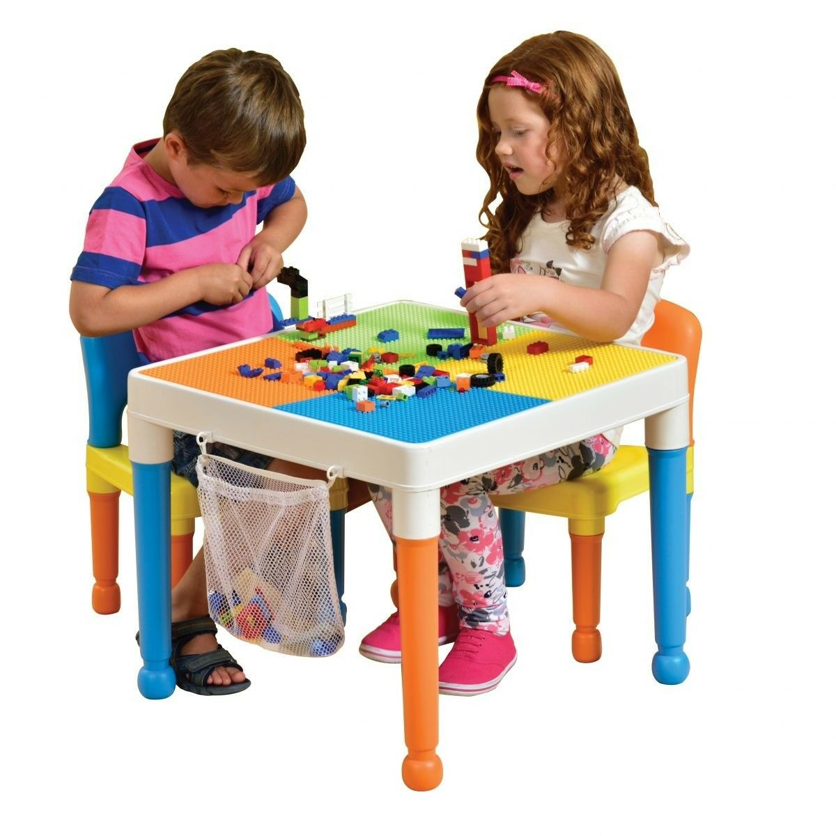 Ein Mehrzwecktisch, der ideal für jüngere Kinder ist. Es gibt eine abnehmbare Abdeckung, die eine glatte Oberfläche bietet, die zum Zeichnen, Malen, Schreiben und Picknicken geeignet ist, während die eigentliche Tischplatte eine Konstruktionsboden-Grundplatte ist, die für alle führenden Marken von Bausteinen (zB Lego) geeignet ist. Auf einer Seite des Tisches befindet sich eine praktische Aufbewahrungstasche. Der Tisch und 2 Stühle werden flach verpackt geliefert und sind einfach zu montieren p>