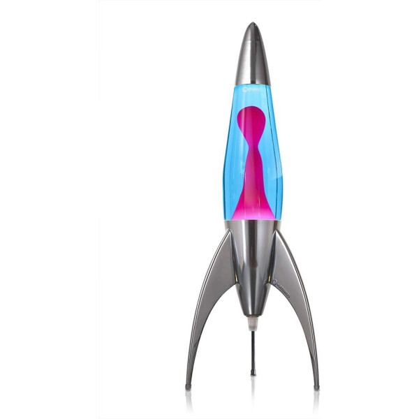Erleben Sie die perfekte Kombination aus Retro-Charme und moderner Funktionalität mit der Raketen-Lavalampe in Blau und Pink.