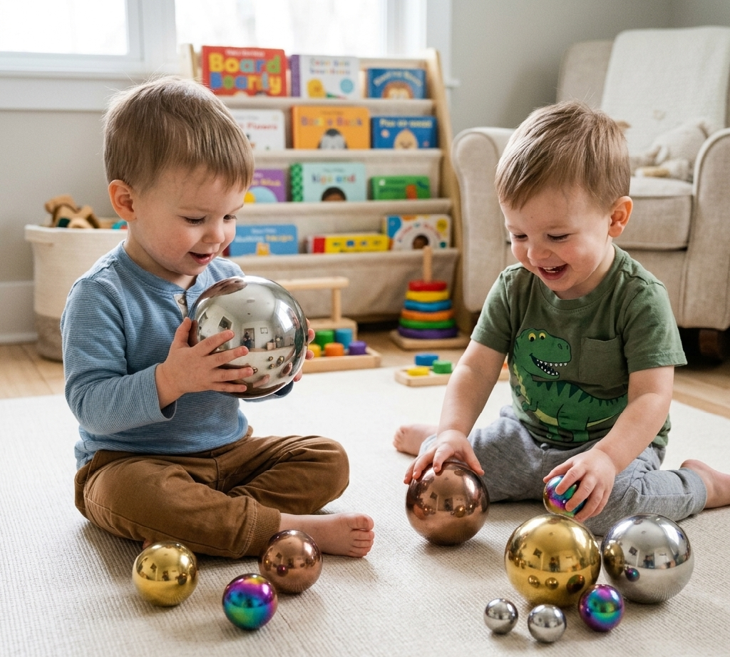 Sensorische Spiegelkugeln aus Metall - 10er Set für Entwicklung
