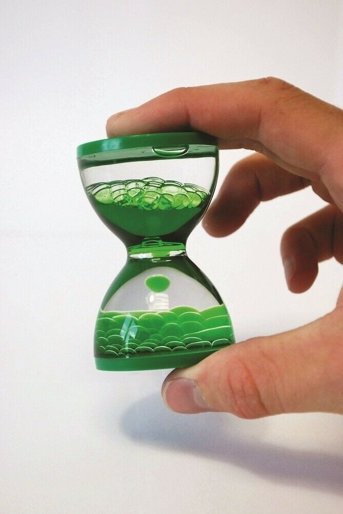 Dieses flüssige mollige Sanduhr-Formset mit Sinneswahrnehmung hat bunte Blasen, die fallen und auf den Boden springen.