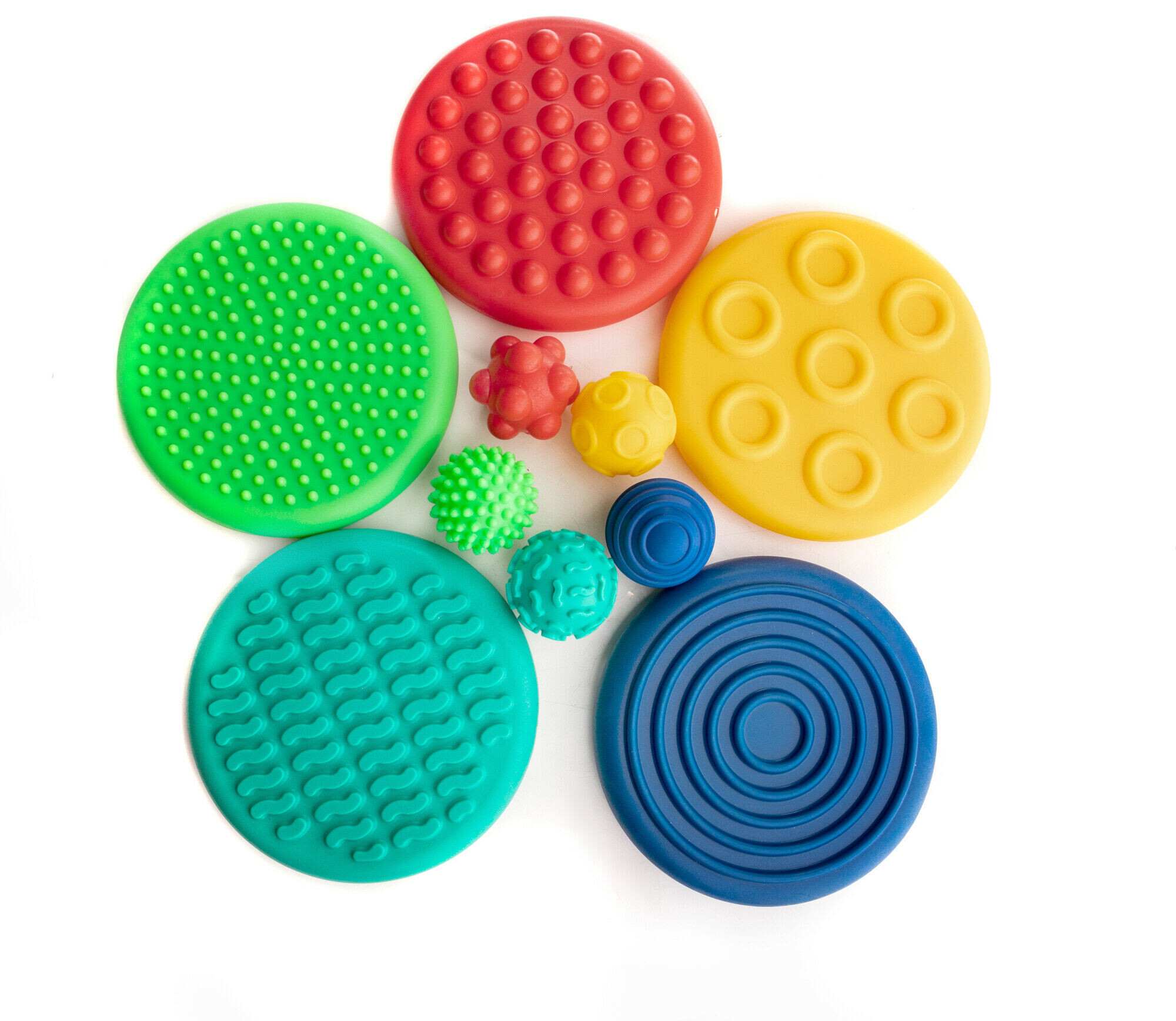 ✔ Inhalt: 5 taktile Scheiben mit verschiedenen Texturen, 5 taktile Bälle, Augenbinde und praktische Aufbewahrungstasche