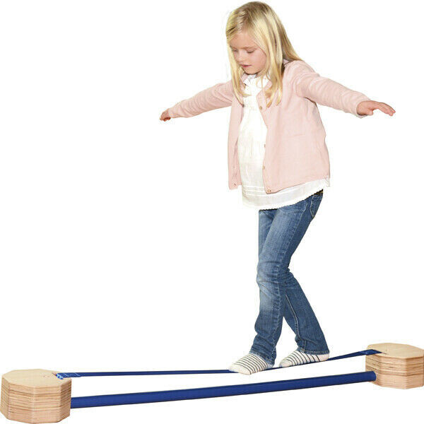 Das ideale Balancier-Spiel für Slackline-Starter. Trainiert spielerisch den Gleichgewichtssinn, die Koordination und stärkt die Konzentration. Stabiler Stand durch zwei Holzblöcke. Geeignet für Kinder bis zu 12 Jahren oder einem Gewicht bis zu 60 Kilogramm.