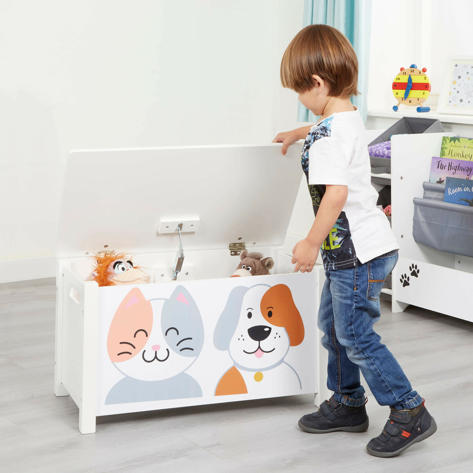 Katzen- und Hundespielzeugboxen sind eine funktionelle und praktische Aufbewahrungslösung für das Schlafzimmer oder Spielzimmer Ihres Kindes. Bewahren Sie Kostüme, Spielzeug, Schuhe, Bücher auf, die Möglichkeiten sind endlos.