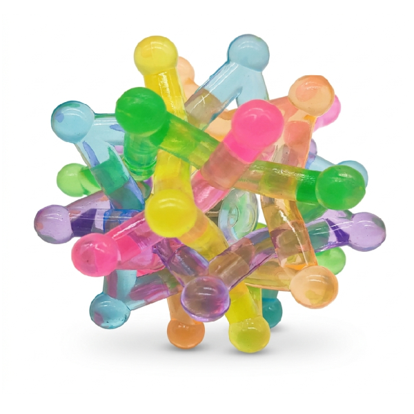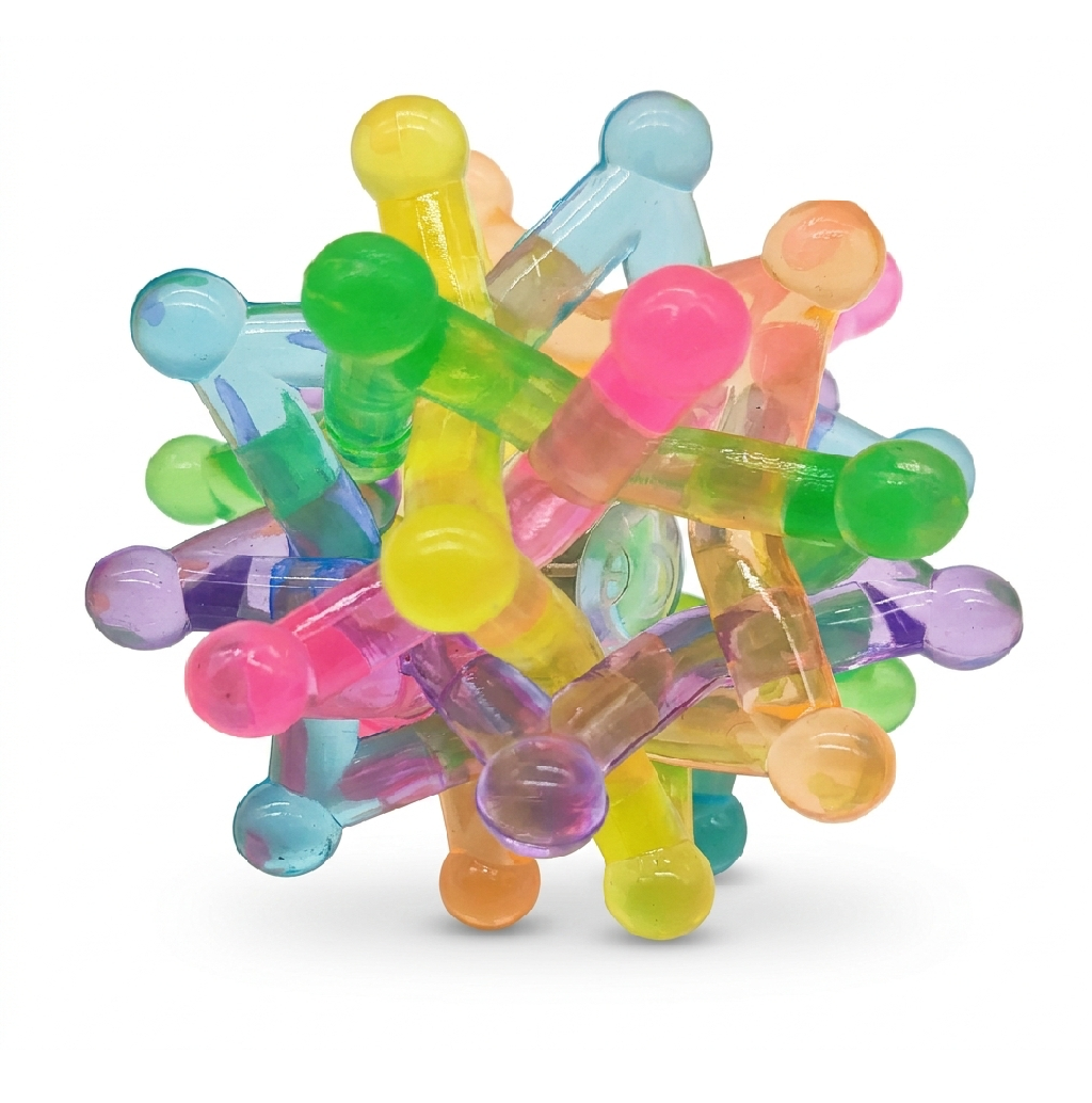 Der UV-Knotenball kombiniert weiches Silikon mit dynamischen Lichteffekten. Seine einzigartige Struktur aus sternförmigen Strängen lädt zum Kneten, Werfen und Entdecken ein, während das integrierte LED-Licht bei jeder Erschütterung aufleuchtet.