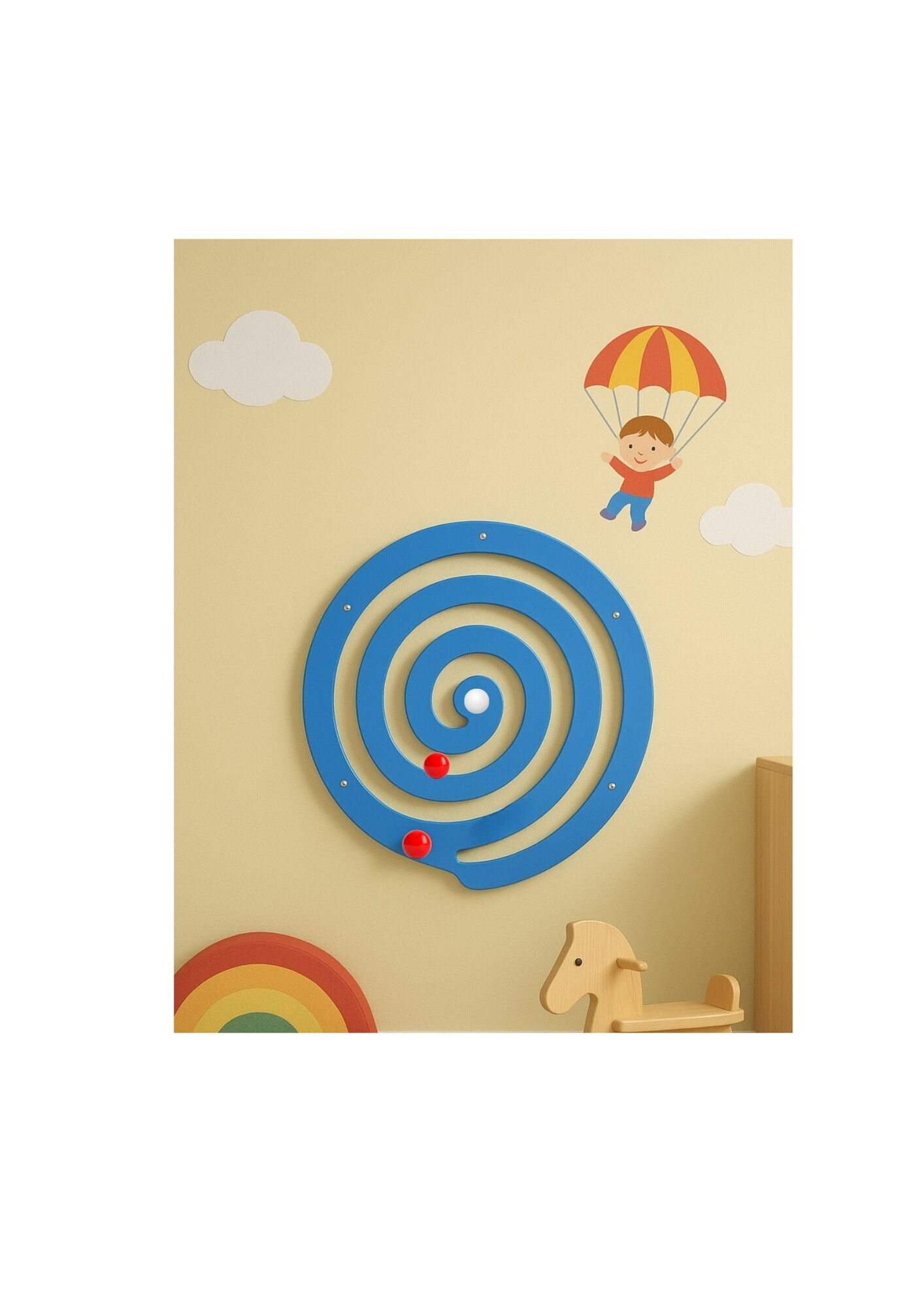 Zusatzinformation: Wandpaneel Kugelspirale Blau – Interaktives & Pädagogisches Wandspiel